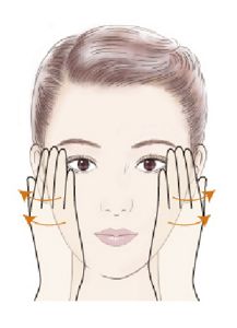 This basic massage is simple and easy to master. Massage smoothly with gentle motions and thoroughly work your way from the forehead down to the bottom of the neck. After completing steps 1 to 7, repeat the steps in areas you feel need extra special attention.